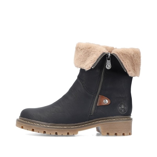 Bottines Rieker doublées chaud, pouvant être portée en tige basse avec fourrure apparente,