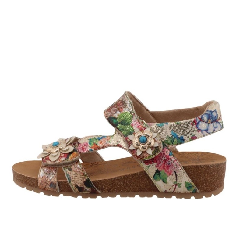 Ces sandales aux motifs floraux de la marque MUSTANG allient style et confort pour accompagner vos journées estivales. Elles apportent une touche de féminité à toutes vos tenues. La tige en matière synthétique de qualité assure une belle durabilité, tandis que le talon compensé effet liège offre une allure décontractée et une marche agréable. Faciles à ajuster grâce à leur bride avec scratch, ces sandales sont l'accessoire indispensable pour une allure tendance et naturelle.