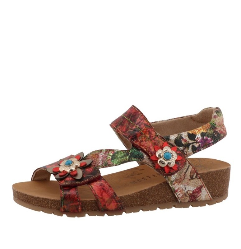 Ces sandales aux motifs floraux de la marque MUSTANG allient style et confort pour accompagner vos journées estivales. Elles apportent une touche de féminité à toutes vos tenues. La tige en matière synthétique de qualité assure une belle durabilité, tandis que le talon compensé effet liège offre une allure décontractée et une marche agréable. Faciles à ajuster grâce à leur bride avec scratch, ces sandales sont l'accessoire indispensable pour une allure tendance et naturelle.